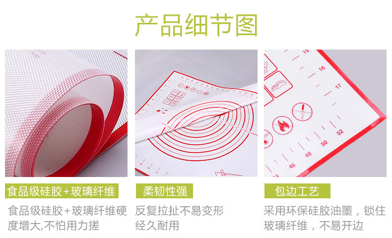 - 硅膠玻璃纖維揉面墊,硅膠帶刻度揉面墊,硅膠烘焙墊